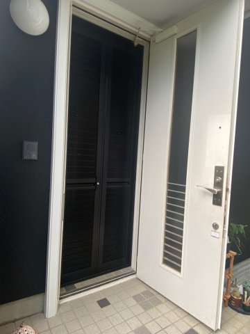 玄関ドアを開けた状態で通風ができるような網戸をご希望でしたが、ペットちゃんが破ってしまうのではないかとご心配がおありでした。