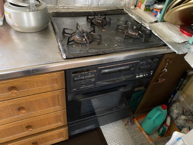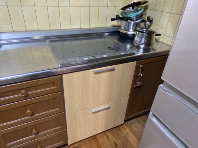 母屋ではガスコンロからIHクッキングヒーターへの取替と、オーブンの撤去を、離れではIHクッキングヒーターの交換とレンジフードの交換工事を行いました。