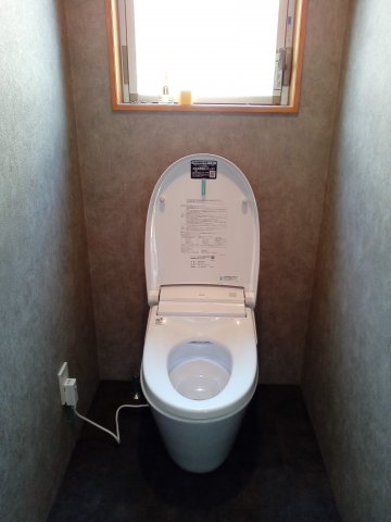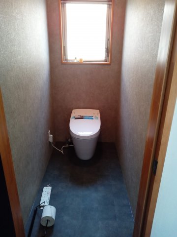 便器の取替、床クッションフロアの貼替工事を行いました。