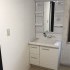 鏡のタイプは、2面鏡、裏面に収納がつくものなどいろいろありますが、今回は1面鏡を選択されました。お客さまの生活スタイル、収納するモノの量などお話しを伺って、最適なプランをオススメしています。