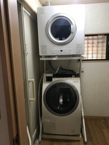 既存のドラム式洗濯機の上にガス衣類乾燥機を設置しました。