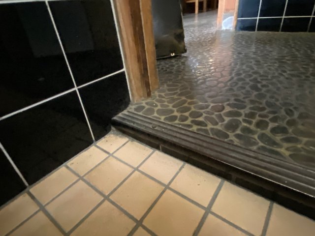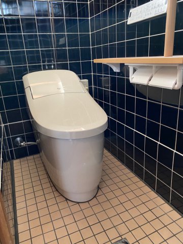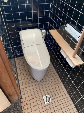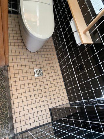 タイル貼りの床と高さ30センチまでの壁タイルをはがし、下地をしたうえで既存のものと同じ色目のタイルを貼りなおしました。