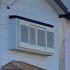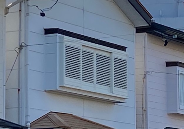2階の出窓にもつけられる、ルーバータイプの雨戸を設置しました。