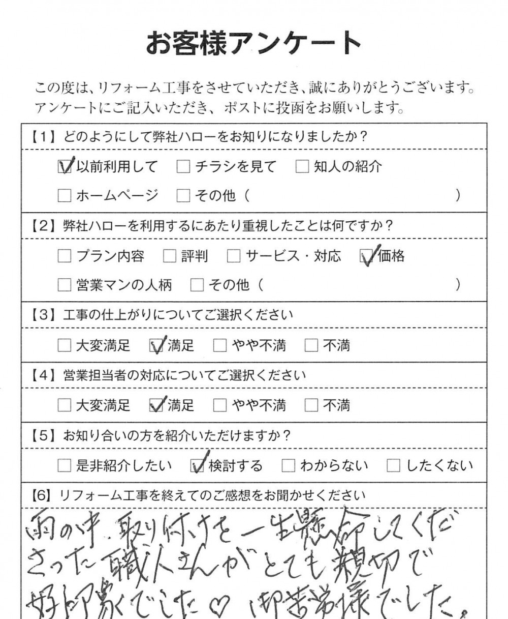 工事のご感想を頂戴しました。