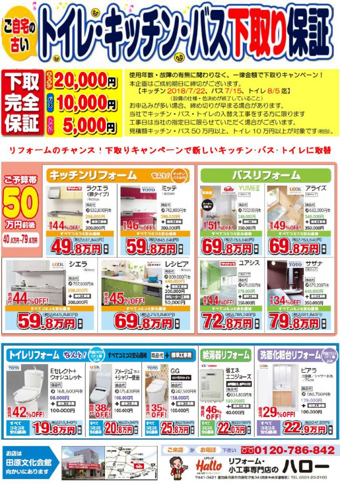【キッチン2018/7/22、バス7/15、トイレ8/5 迄】